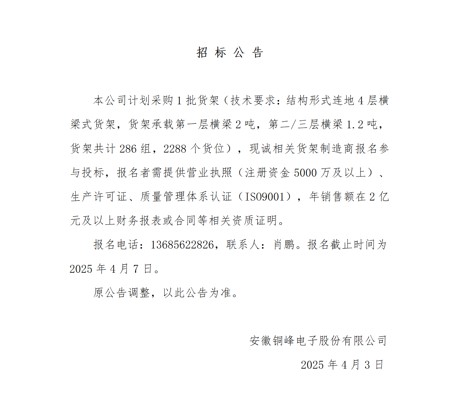 銅峰公司智能倉儲立體倉庫貨架采購招標(biāo)公告_01