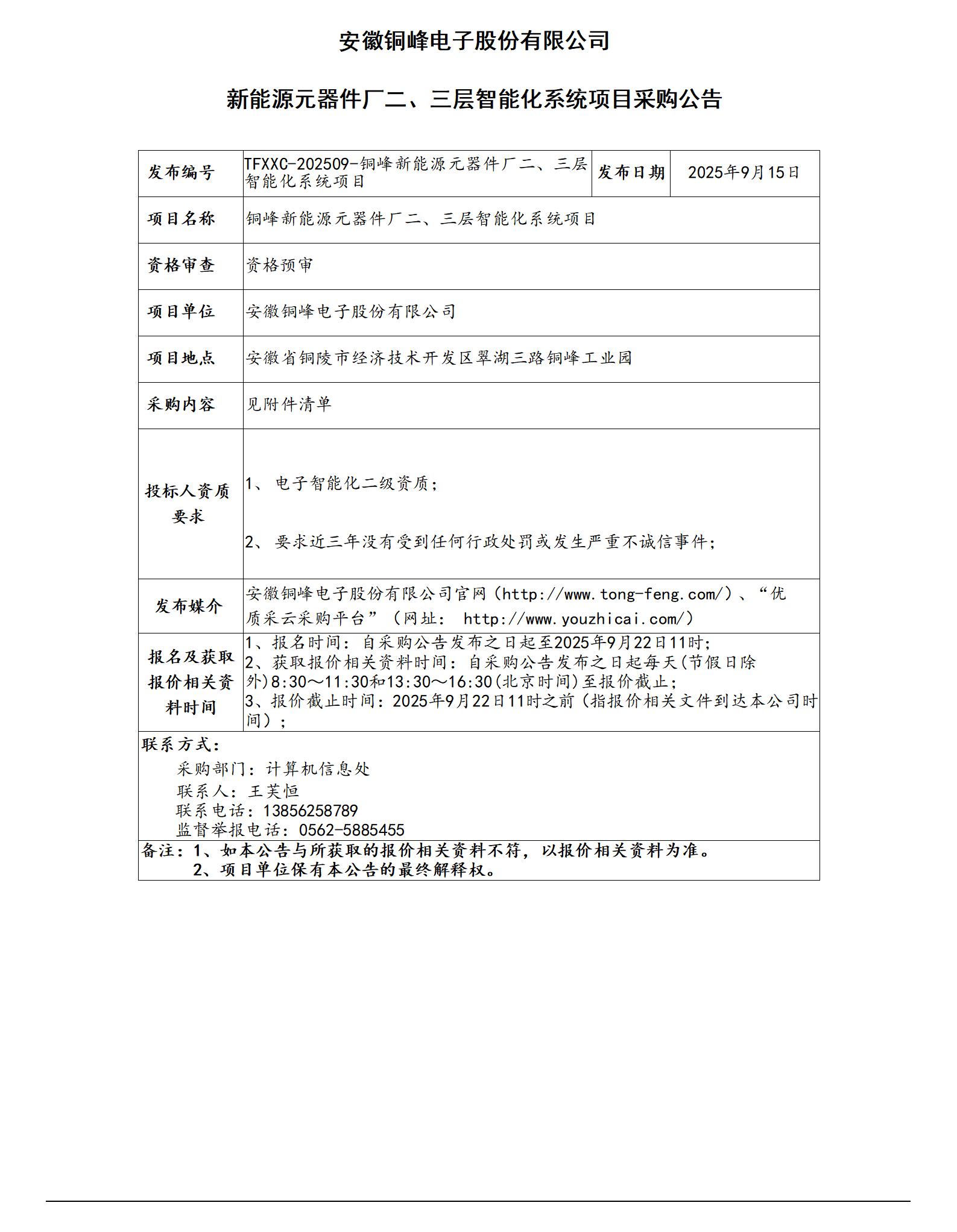 安徽銅峰電子股份有限公司 (新能源元器件廠二、三層智能化系統(tǒng)項目采購公告)_01